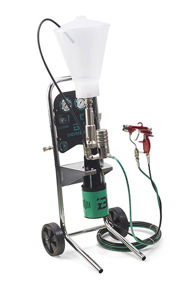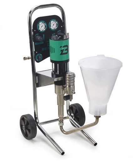 Apollo 303 pnevmatska batna črpalka za lakiranje na vozičku s pištolo za barvanje Mach3 in sesalnim sistemom.
