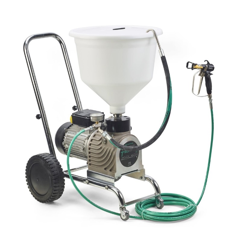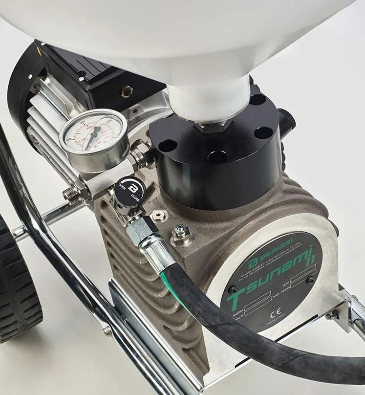 Tsunami 65 je visoko zmogljiva električna membranska črpalka, zasnovana za profesionalno Airless brizganje barv na srednje velikih in večjih površinah. Črpalka je posebej prilagojena za sektor gradbeništva in kovinarstva, saj omogoča hiter in učinkovit nanos materialov z minimalnim odvečnim pršenjem. S svojo robustno zasnovo na vozičku in močnim motorjem predstavlja zanesljivo rešitev za najzahtevnejše projekte.